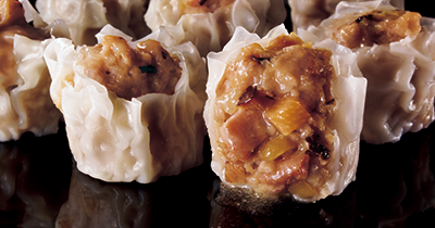 - ひとくち噛むと肉汁が口の中でジュワッとひろがる、肉のうま味がたまらない大ぶりの焼売です。