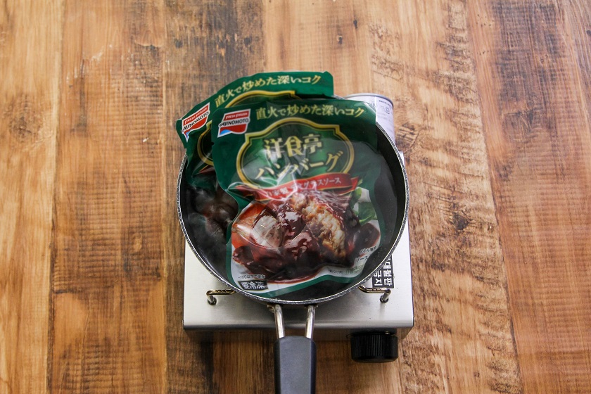 - 1 「洋食亭®ハンバーグ 自家製デミグラスソース」は、パッケージの表示通りに温める。