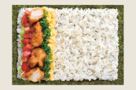 - 4 巻きすにのりを置き1のご飯を広げる。