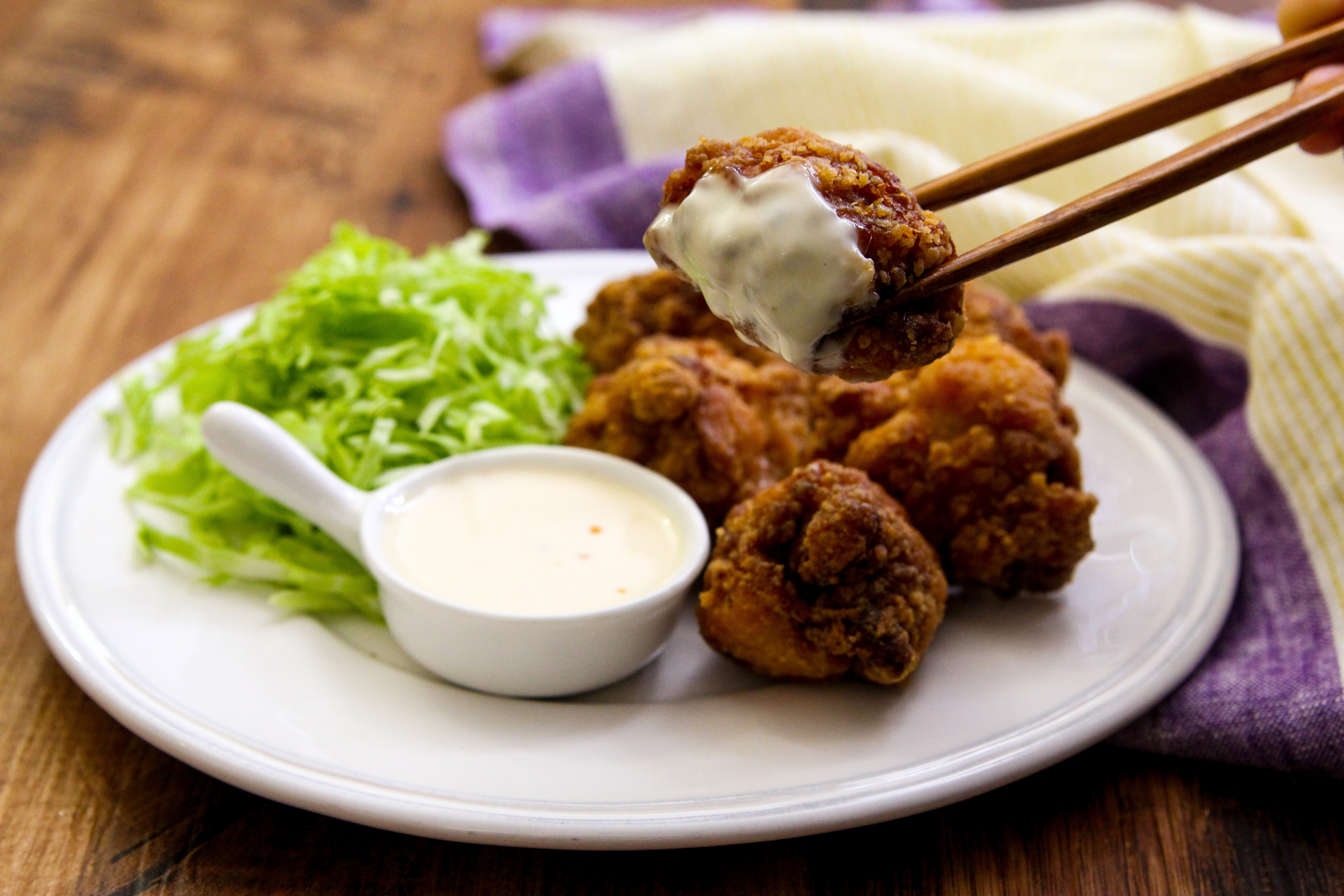 白だし、マヨネーズ、レモン汁を合わせた特製ソースは、から揚げと相性抜群! から揚げは温めた後、トースターで焼くことで更においしくなります。
